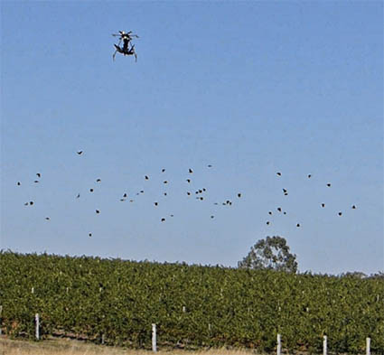 Som tidligere nævnt har mange vinproducenter, når høsten er lige om hjørnet, problemer med fugle, der stjæler de fuldmodne druer. Det er især i de oversøiske vinlande – i Australien, New Zealand og Californien – fuglene kan gøre et alvorligt indhug i høstmængden.