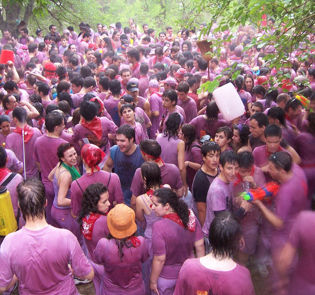 Tusinder af deltagere er bevæbnet med vin og nyder en “krig”, der hverken har vindere eller tabere, og hvis eneste fare ligger i, at deltagerne indtager for meget af deres egen ammunition. Plus at deres tøj, som fra starten af er hvidt, får en pæn vinrød farve. Der ryger let omkring 40.000 liter rødvin til løjerne.